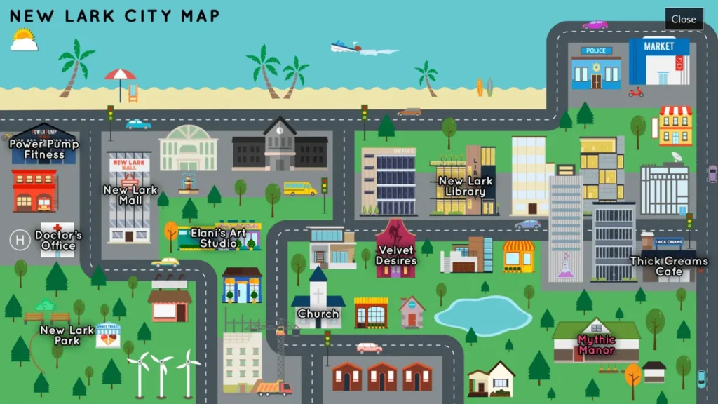 | Afternoon | Pool, Living Room, Gym, Town | Swimming lessons, workout sessions, shopping for gifts, special story conversations. |